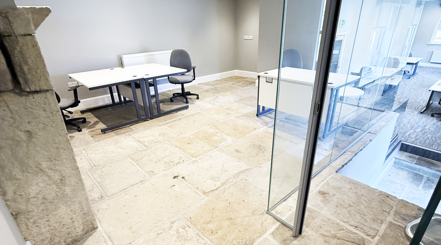 The ‘wow’ factor Office No. 1 – 792 sq ft this is the most contemporary office of The Chapel, a stunning mezzanine with historical and traditional features such as a large fireplace and large stone flags to fit approximately 10 people, with shared kitchen and bathroom facilities.